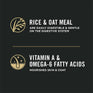• Rice and oat meal are easily digestible and gentle on the digestive system