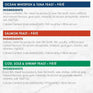 Ocean whitefish, liver, fish, meat by-products, fish broth, tuna, artificial and natural flavours, added colour, guar gum, tricalcium phosphate, minerals, salt, vitamins.