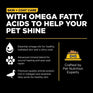 - Omega fatty acids support healthy, hydrated skin + a shiny coat