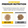 Calorie Content: ME (calculated) = 3649 kcal/kg or 438 kcal/cup (250 ml)