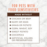 - Made without - grain, dairy, eggs, chicken, beef, sweet potato, potato, chickpeas, corn, wheat, soy, artificial colors or preservatives