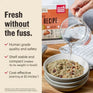 The benefits of fresh, homemade meals — real ingredients, minimal processing, and robust nutrition — in a convenient, cost-effective form. Just add warm water to serve as a complete meal, a topper or pair it with your favorite enrichment toy.