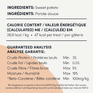 Calorie Content: 2631 kcal / kg, 47 kcal per treat