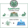 - Depending on the size and the breed of the rabbit, an average daily food portion of 50 to 80 g is recommended.
