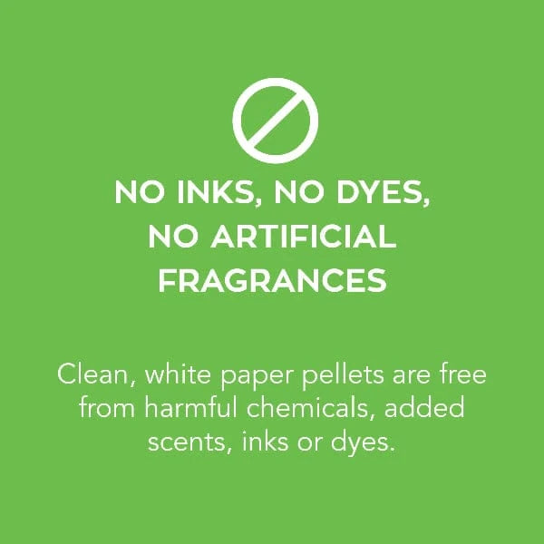 - Naturally lightweight & no inks, dyes or artificial fragrances – Made entirely from reclaimed, clean white paper fiber, our light pellets absorb all liquid making clean-up easy. Plus, it is biodegradable and compostable.