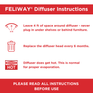- Keep diffuser plugged in continuously – replace refills every 30 days, replace diffuser device every 6 months