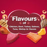 A mix of your cat’s 7 favourite flavours for 7 x the yum! This one-of-a-kind meal features the flavours of chicken, beef, turkey, salmon, tuna, shrimp and cheese. A combination so delish, it’ll bowl your cat over.
